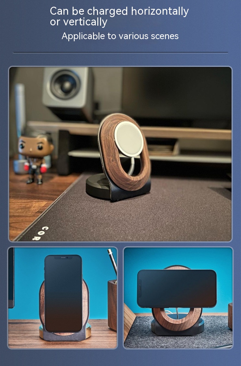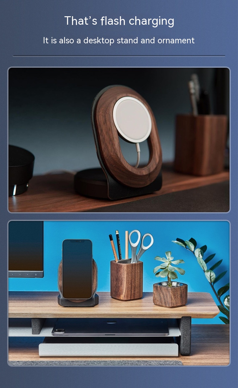 Walnut Magsafe Magnetic Wireless Charging Bracket Mobile Phone Solid Wood Base Wooden